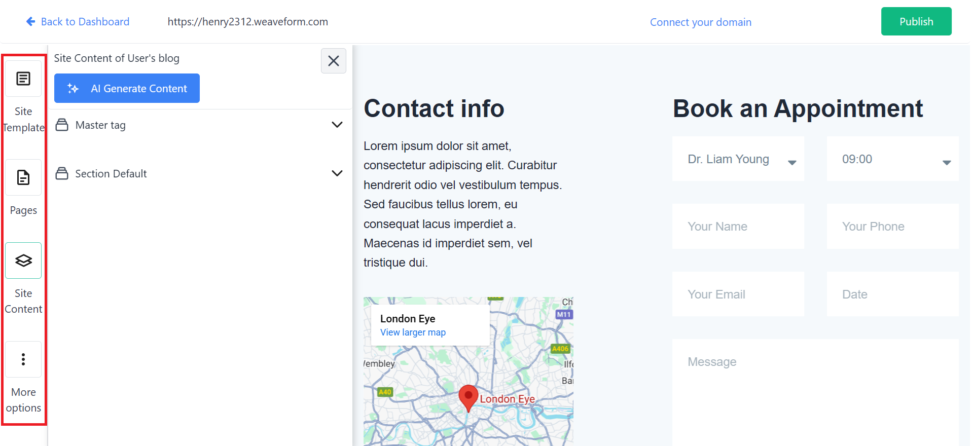 Weaveform is built for simplicity. You can manage your website using the menu located on the left side of your dashboard.