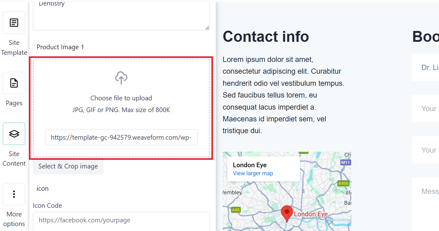 - Media Library: Choose from a gallery of images you have previously uploaded to your site